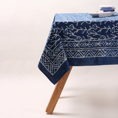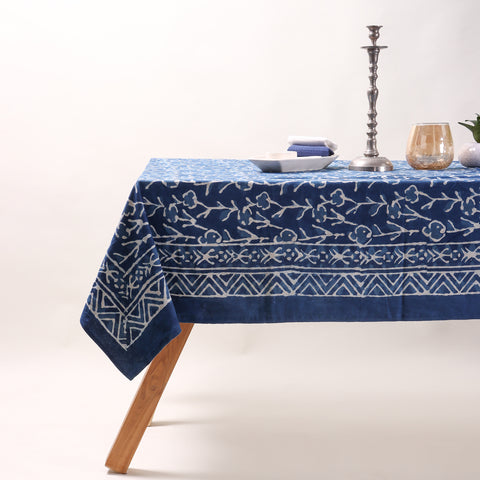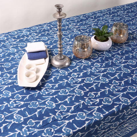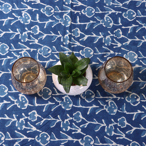 Indigo Fabric block print Tablecloth Floral Hand Printed India cotton Fabric Natural Vegetable Dye Sewing Linen, Wedding Tablecloth